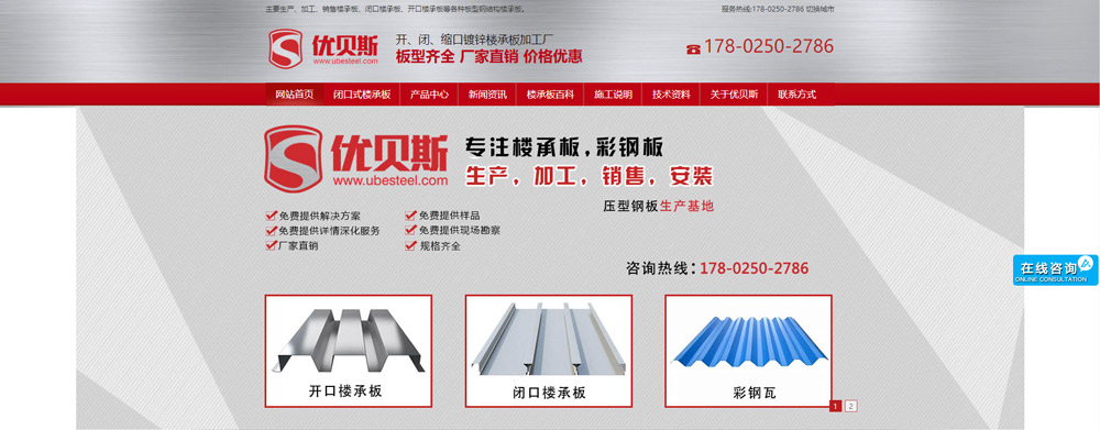 無(wú)錫優(yōu)貝斯鋼品有限公司主要生產(chǎn):樓承板, 鋼承板, 壓型鋼板, 彩鋼板, 閉口樓承板, 開(kāi)口樓承板, 縮口樓承板價(jià)格優(yōu)惠及相關(guān)的鋼結(jié)構(gòu)輔材。